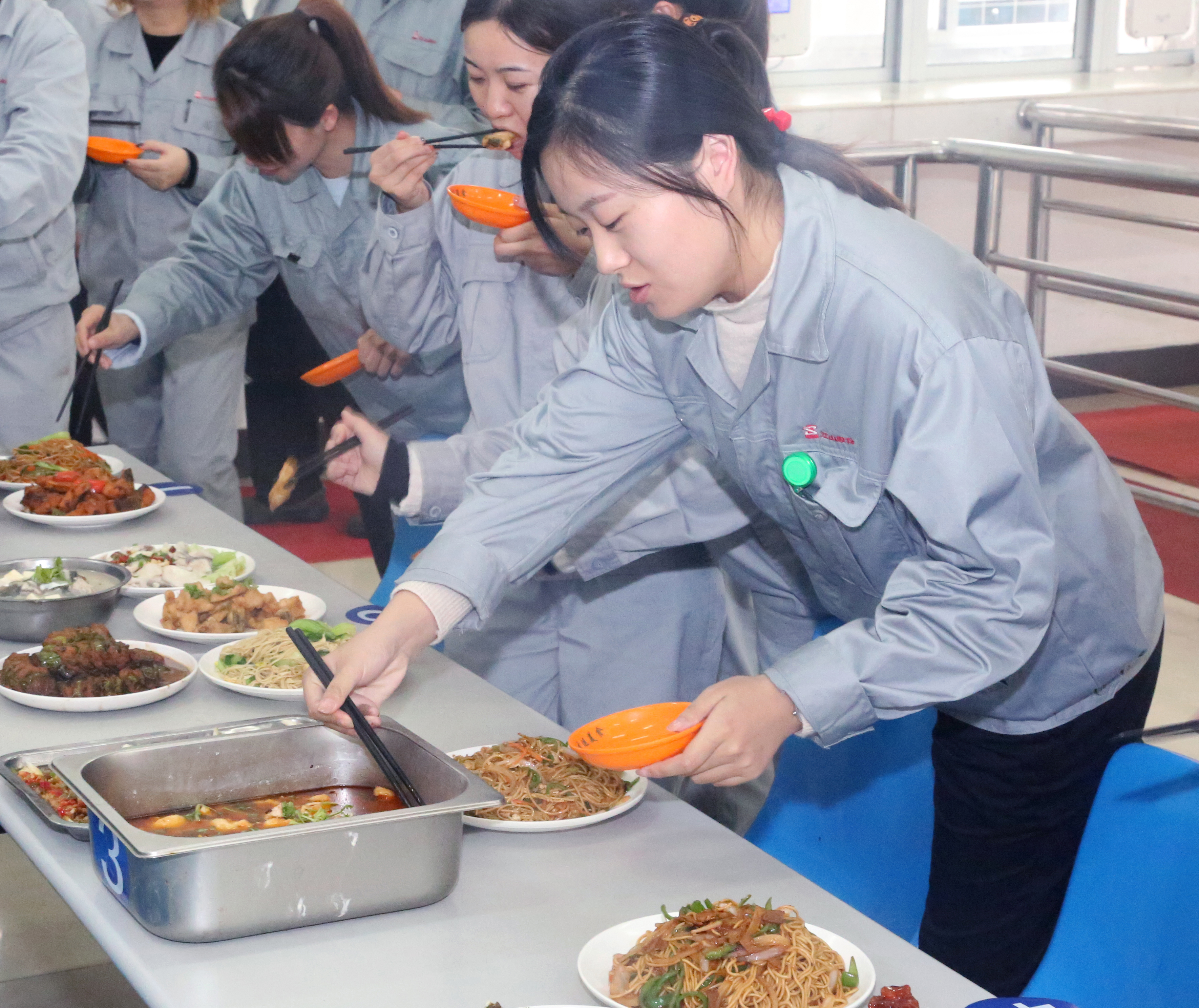 公司已第二次舉辦食堂技能比武了,目的就是為提高食堂服務(wù)質(zhì)量,提升廚師業(yè)務(wù)技能水平,“刷新”員工的用餐體驗(yàn)。共4位廚師參加了廚藝大比拼。他們按照比賽要求,先是在現(xiàn)場(chǎng)制作炒面,然后再拿出自己的一道拿手菜。 隨著主裁判的一聲“開始”,參賽選手操刀開鍋,各施所長(zhǎng),好不熱鬧,展現(xiàn)了過硬的業(yè)務(wù)素質(zhì)和嫻熟的制作技能。在大廚們的精心烹調(diào)下,一道道造型精巧的美味佳肴一一呈現(xiàn)在眾人面前。