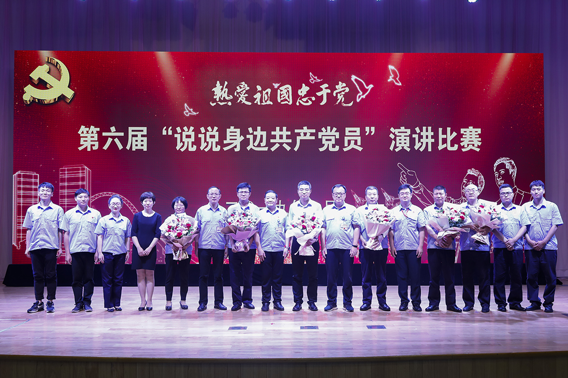 來自各基層黨支部的施天鳳、王強等7名演講者聲請并茂地為大家講述了身邊優秀黨員的先進事跡,贏得了現場無數喝彩。 演講比賽結束時,7位演講事跡主人公上臺與大家見面,公司領導為他們獻上了最美麗的鮮花,并現場與遠在非洲工作的演講事跡主人公李紅飛進行了視頻連線,送去了關心和問候,全體參會人員為他們送去了最熱烈的掌聲。